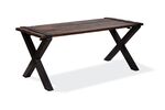 Demontale tafel met metalen kruispoten, het blad kan makkelijk worden gedemonteerd en worden vervoert.