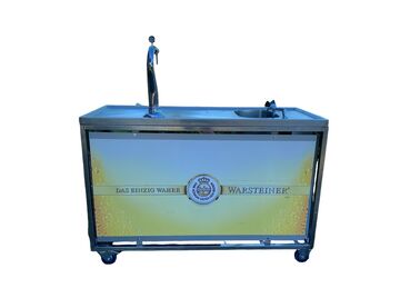 De mobiele Warsteiner bier tap is uitgevoerd met een tappunt, afgifteblad en een spoelbak.
