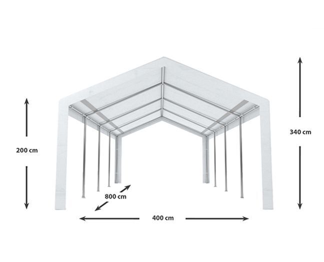 Deze tent is zeer geschikt voor een feest van ongeveer 32 personen. Hij is aan alle vier de zijde af te sluiten. Deze tent kan eventueel gecombineerd worden met andere partytenten voor meer ruimte.